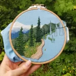 This gorgeous landscape embroidery pattern is a fun, challenging project to get lost in. It features dynamic textures, surprising stitches, and rich colors. There is an online video tutorial to help guide you, but I would not suggest this design for beginners. This alpine meadow scene is recreated from photos taken during our hike of Mount Townsend in Washington State's Olympic Peninsula.